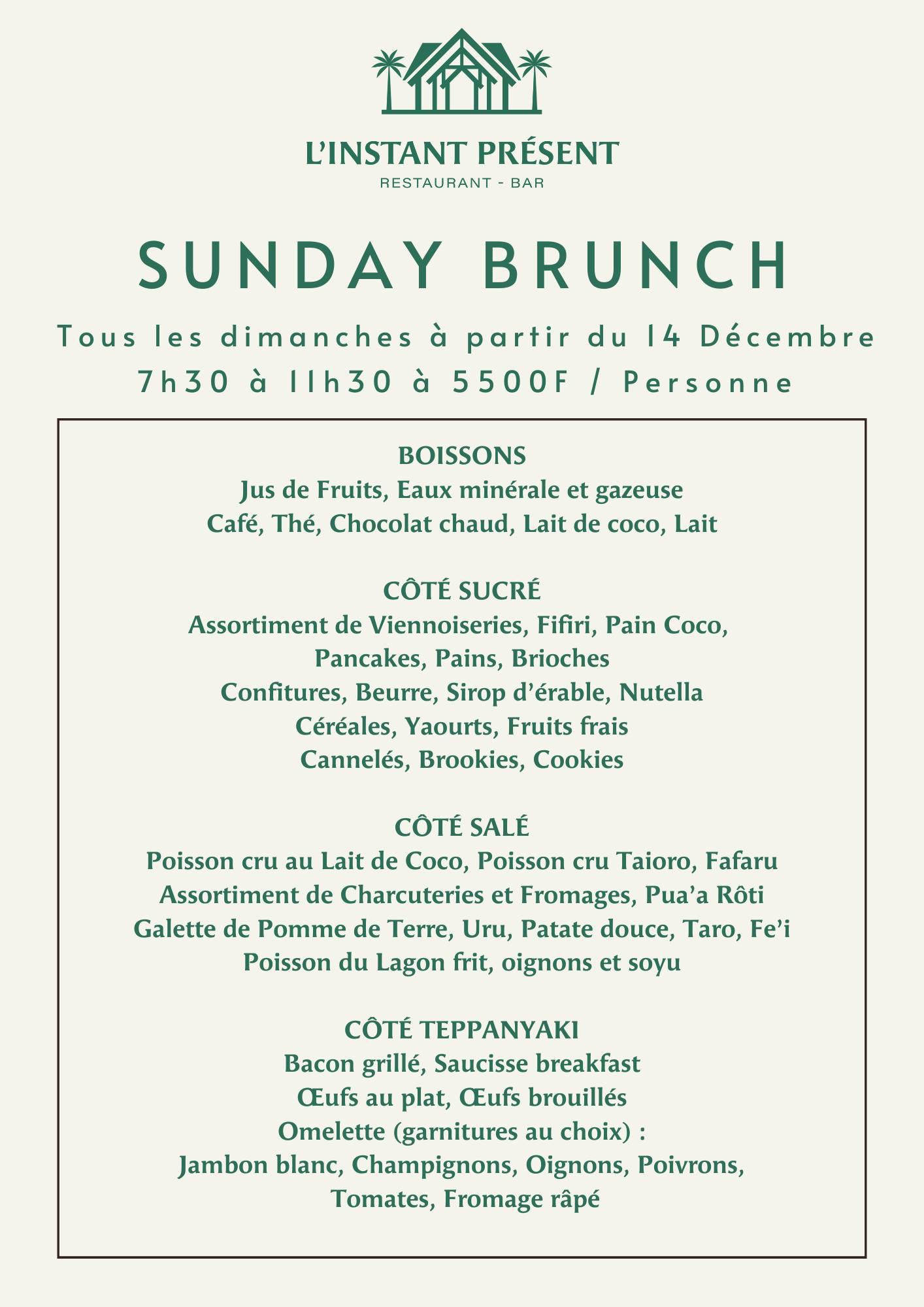 🍳🍹🥓 Nouveau ! Le Sunday Brunch débarque à L'Instant Présent tous les dimanches dès le 14 décembre !