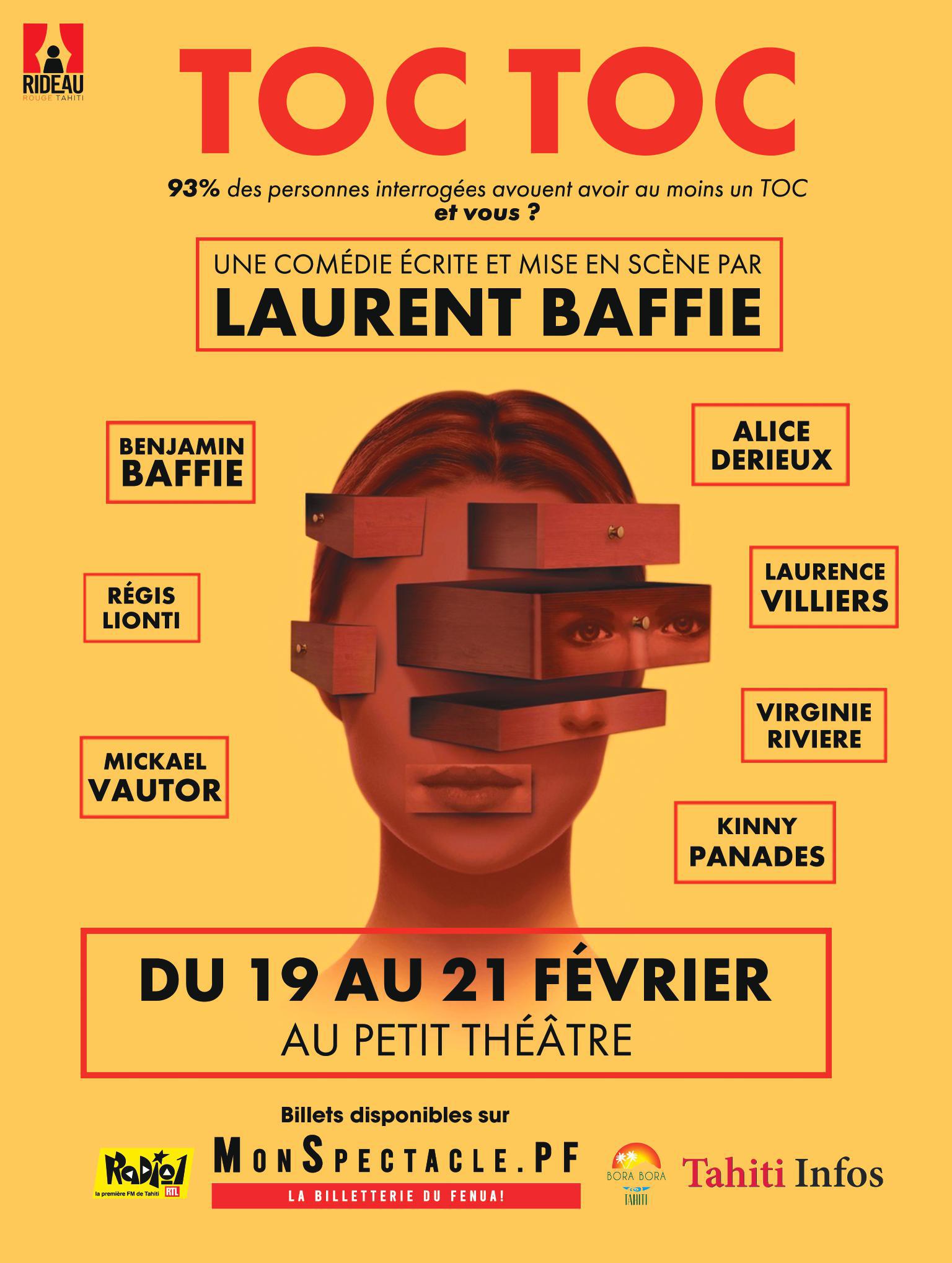Places à gagner + Tarif #BIGCE pour aller voir le spectacle "TOC TOC" présenté par Rideau Rouge Tahiti pour 3 représentations :