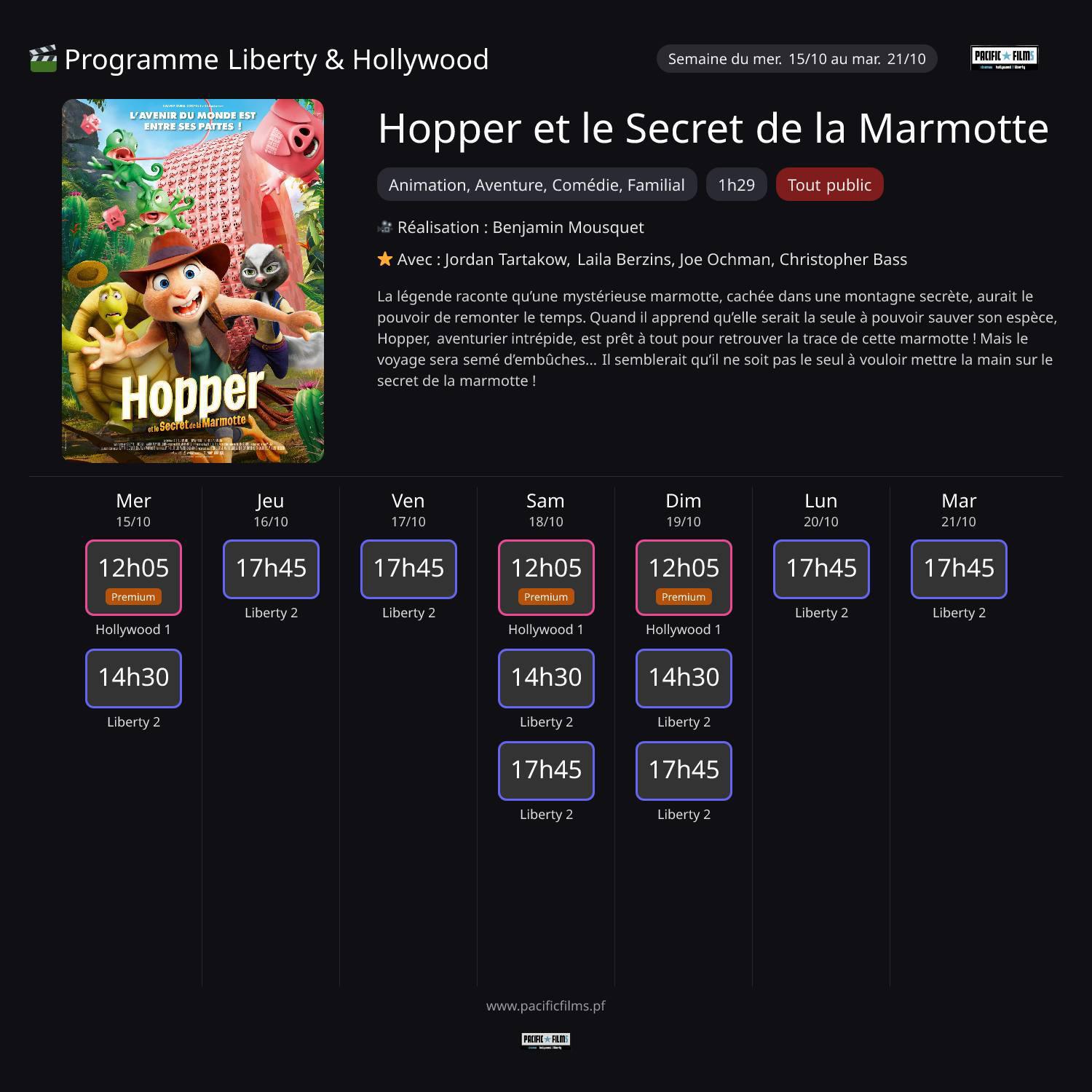 La légende raconte qu’une mystérieuse marmotte, cachée dans une montagne secrète, aurait le pouvoir de remonter le temps. Quand il apprend qu’elle serait la seule à pouvoir sauver son espèce, Hopper, aventurier intrépide, est prêt à tout pour retrouver la trace de cette marmotte ! Mais le voyage sera semé d’embûches... Il semblerait qu’il ne soit pas le seul à vouloir mettre la main sur le secret de la marmotte !
