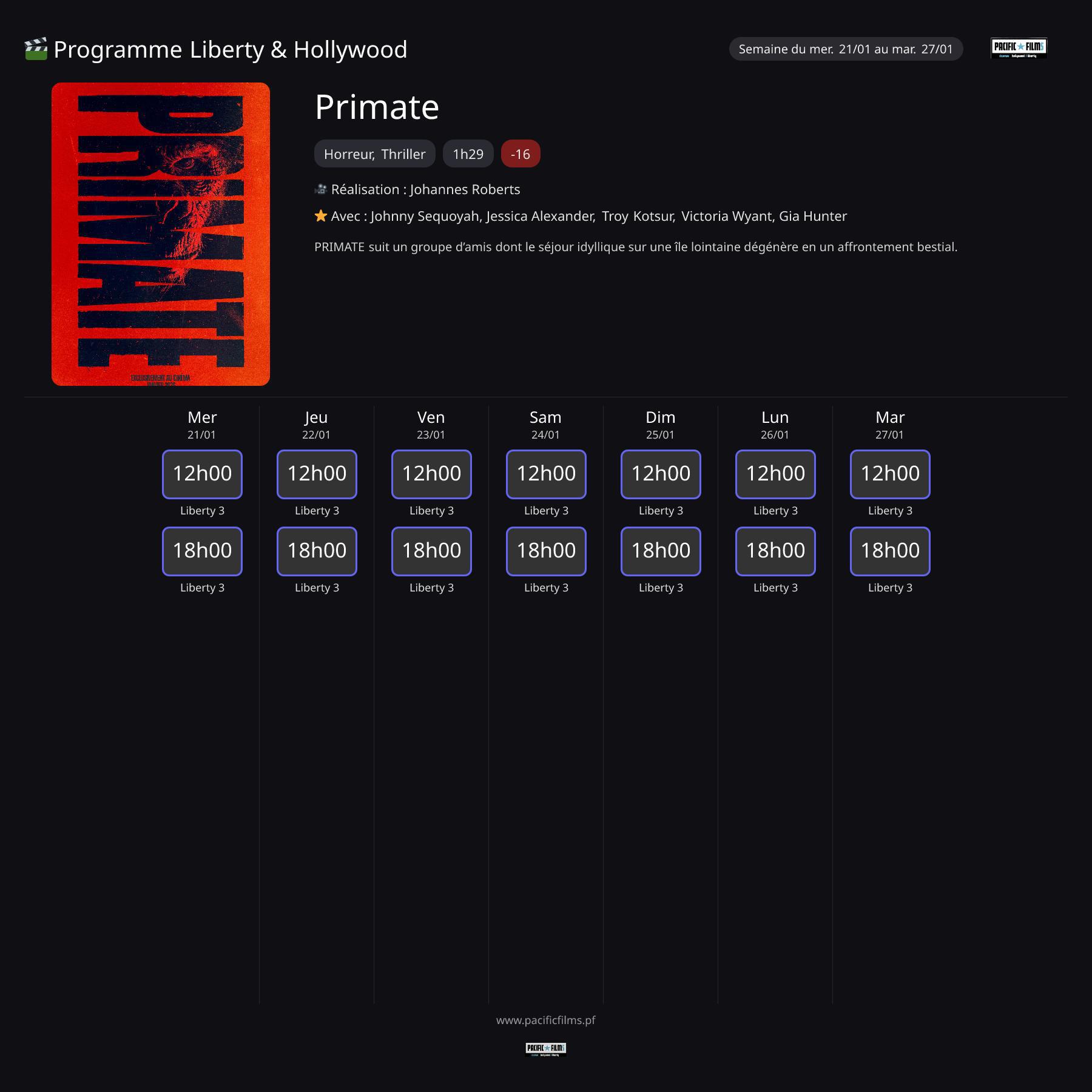 PRIMATE suit un groupe d’amis dont le séjour idyllique sur une île lointaine dégénère en un affrontement bestial.
