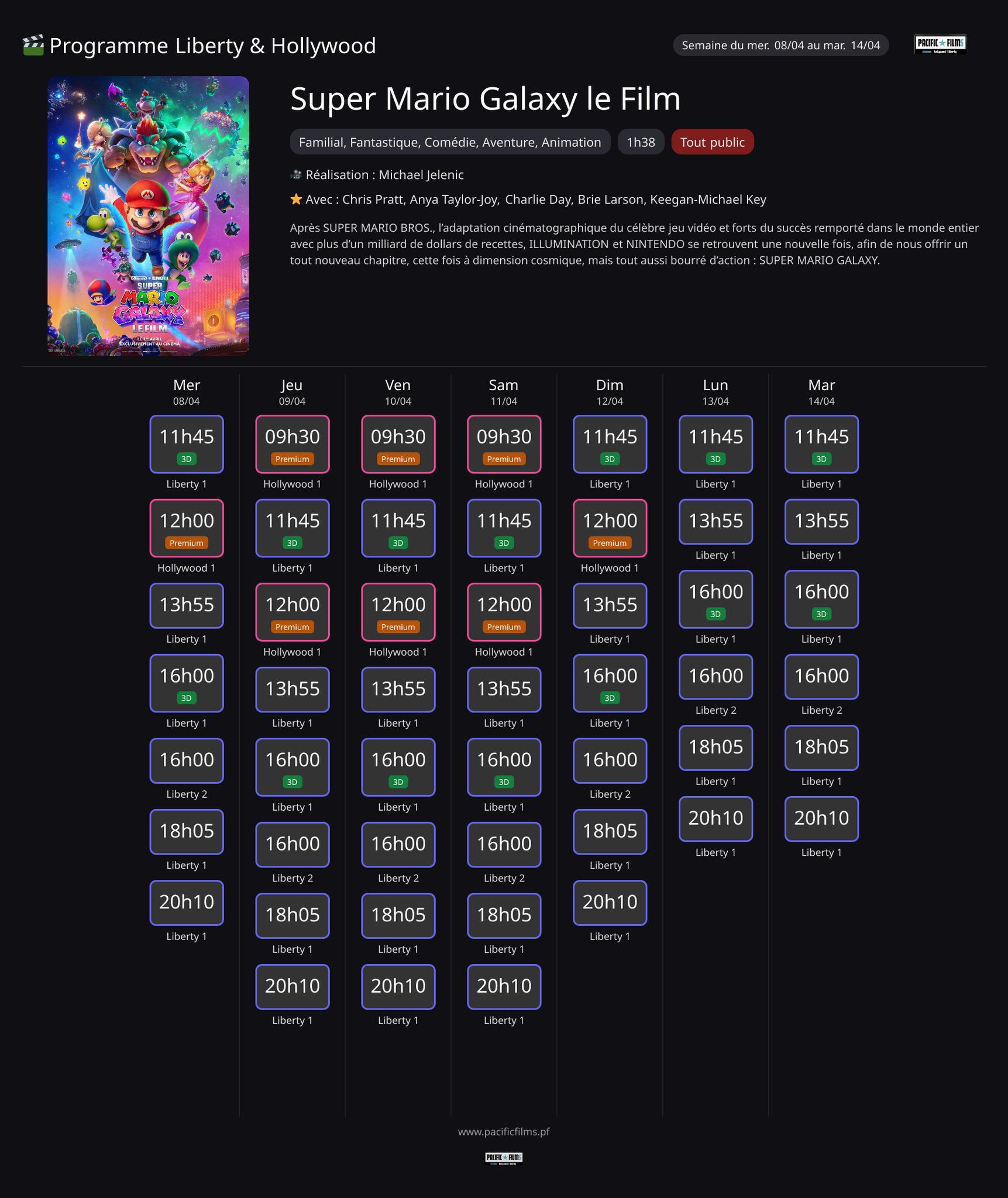 Après SUPER MARIO BROS., l’adaptation cinématographique du célèbre jeu vidéo et forts du succès remporté dans le monde entier avec plus d’un milliard de dollars de recettes, ILLUMINATION et NINTENDO se retrouvent une nouvelle fois, afin de nous offrir un tout nouveau chapitre, cette fois à dimension cosmique, mais tout aussi bourré d’action : SUPER MARIO GALAXY.