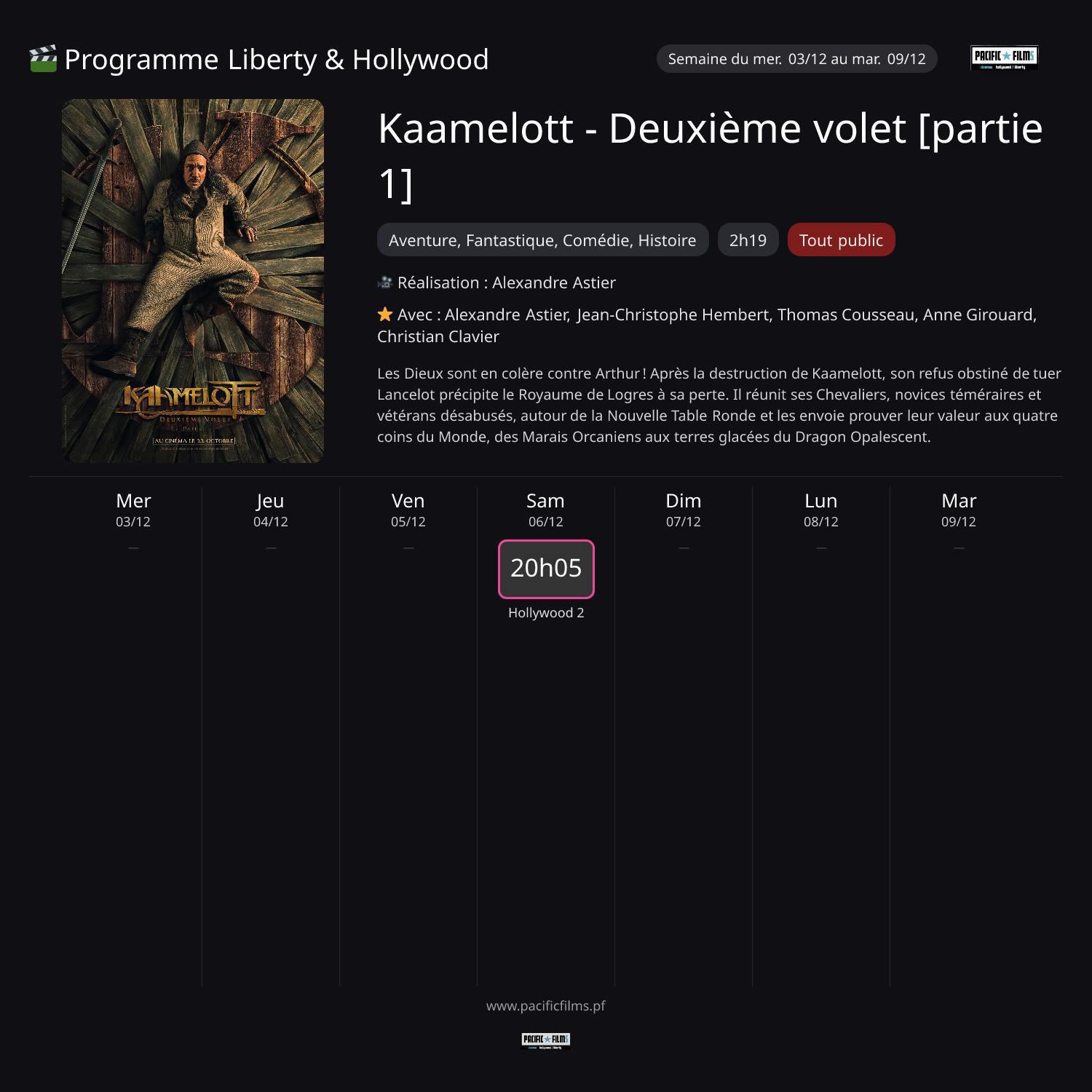 AVENTURE, FANTASTIQUE, COMEDIE, HISTOIRE - (TOUT PUBLIC)